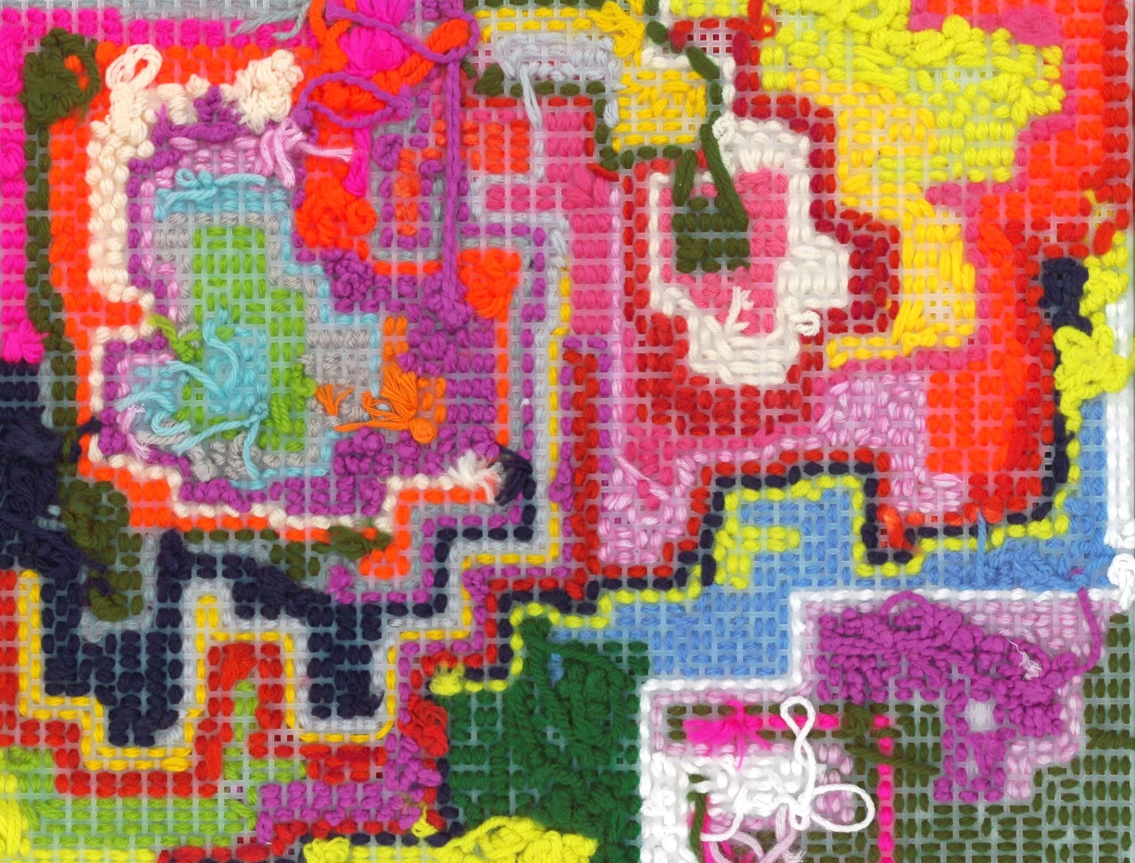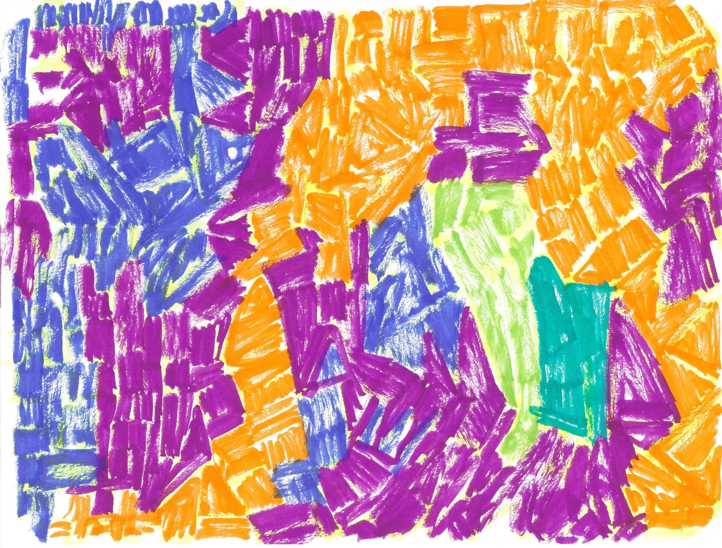 Scooby began coming to Imagine That in 2025. During our brief time getting to know her, she has shown a magnetic attraction to bright colorful patterns in her work.